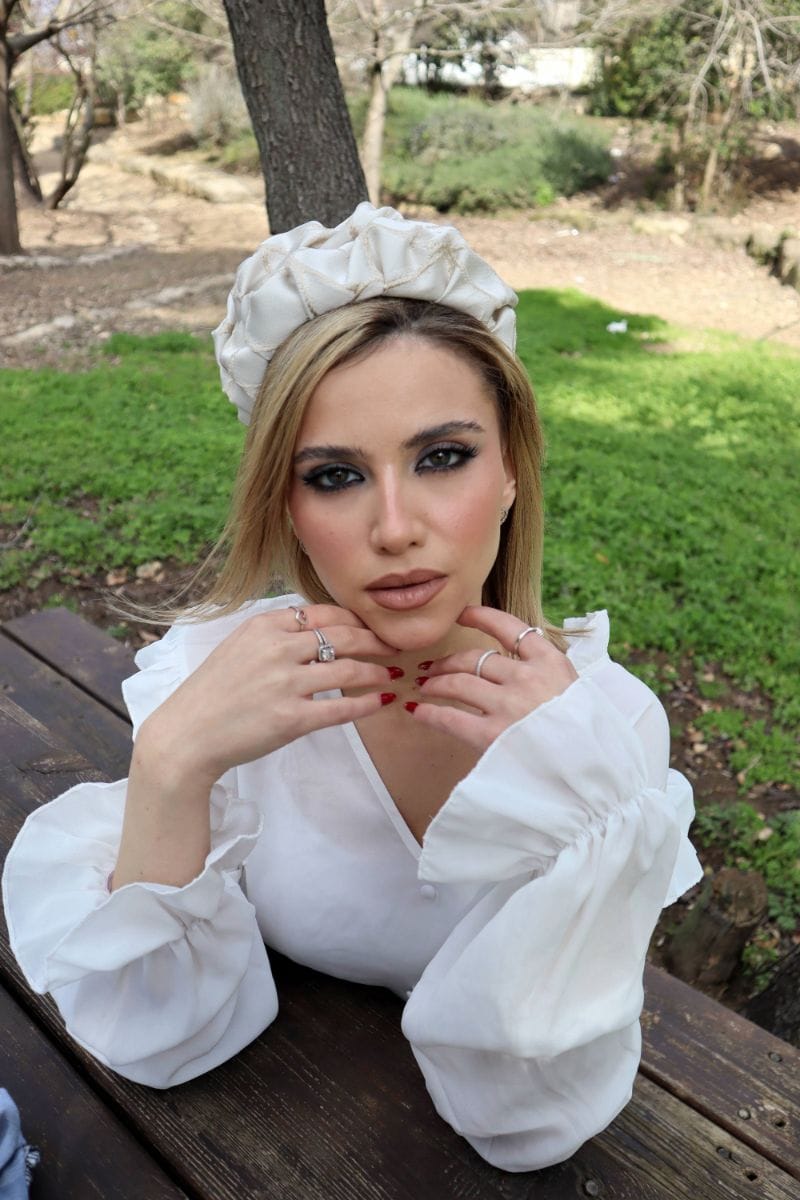הדגם המנצח של סיה בוטיק , בלי להתאמץ ולהסתבך עם קשירות מיותרות יצרנו עבורך את קשת לשיער יסמין , דגם עם נפח שנתפר בטכניקה מיוחדת כדי שתקבלי מראה עם גובה שיחמיא לך. רוחב הקשת 9-10 ס"מ( ניתן להזמין ברוחב נוסף, 7-8 ס"מ או 11-12 ס"מ אנא צייני את הרוחב שתרצי בסיום ההזמנה.) בד הקשת יציב , בצבע שמנת ורקמה בזהב
