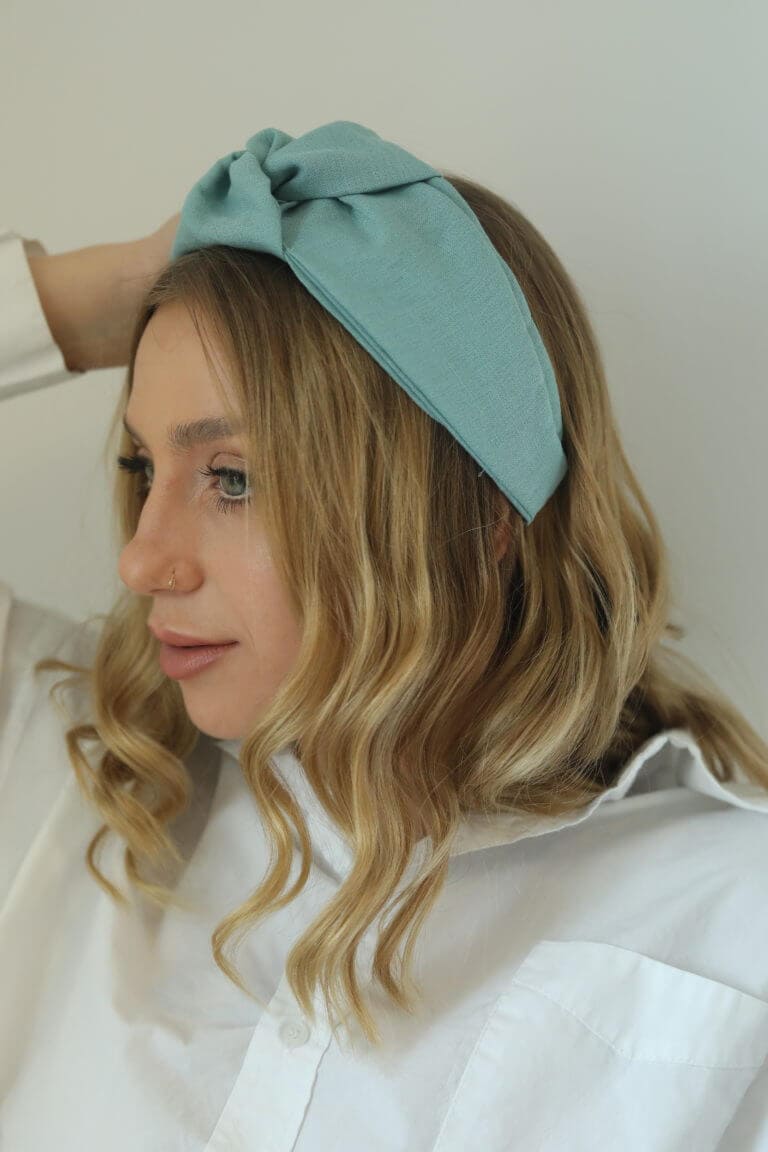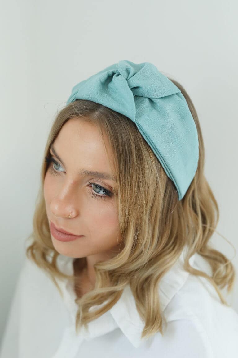 קשת מבד פשתן מנטה עם קישוט קשר מובנה